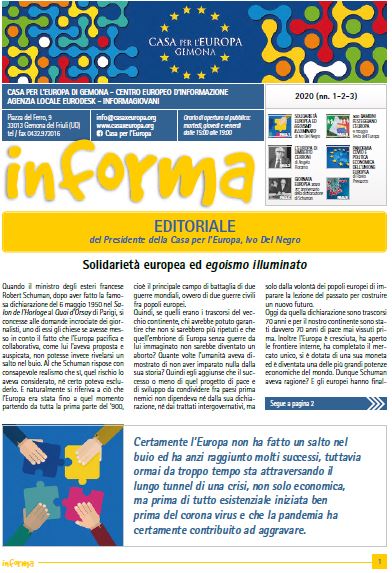 Potrete inoltre leggere due contributi molto interessanti: una riflessione a cura del professor Angelo Floramo Vicepresidente della Casa per l’Europa, “La democrazia è l’enigma risolto di tutte le costituzioni. L’Europa di Umberto Cerroni”; e un approfondimento curato dal Professore Emerito dell’Università degli Studi di Udine Flavio Pressacco circa gli effetti della pandemia da Covid-19 sulla politica economica europea.