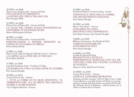 8 FEBBRAIO ORE 18:00 presso Museo Civico di Palazzo Elti a Gemona – Conferenza collaterale alla mostra “Il Friuli al tempo di Leonardo”, a cura della Prof.ssa Miriam Davide.