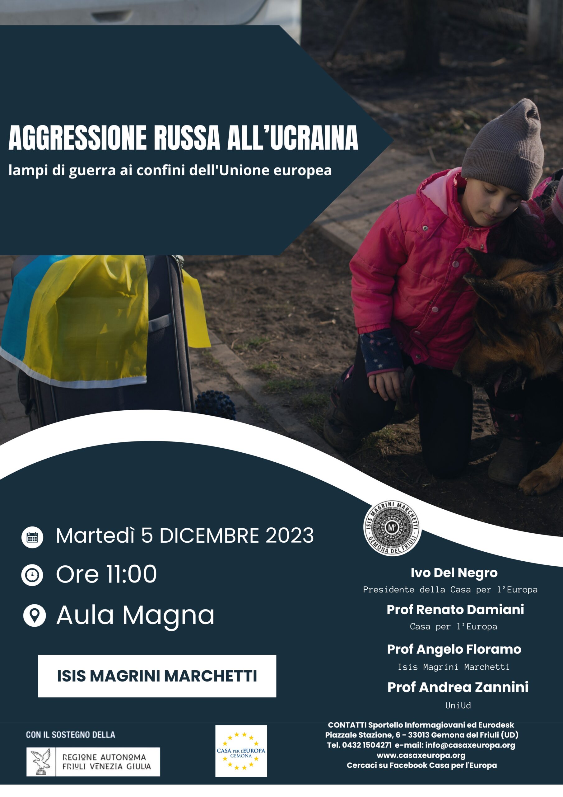 Dai tempi della bocciatura della Comunità europea di difesa (CED) avvenuta nel lontano 1954, l’Europa insegue a distanza il progetto di una politica estera e di difesa comuni; sarà la sciagurata guerra in Ucraina uno stimolo all’Unione europea per il raggiungimento di un’autonomia politico-militare, pur nel contesto della NATO? Sarà questa la domanda a cui si cercherà di dare una risposta tramite cenni storici e riflessioni politiche attuali durante il convegno dal titolo “Aggressione russa all’Ucraina: lampi di guerra ai confini dell’Unione europea” che la Casa per l’Europa di Gemona ha organizzato presso l’ISIS Magrini-Marchetti di Gemona martedì 5 dicembre 2023. A portare le loro considerazioni sul tema saranno il Presidente dell’Associazione Ivo Del Negro, il socio della Casa per l’Europa ed esperto di integrazione europea Renato Damiani, il Vicepresidente della Casa per l’Europa e docente presso il Magrini-Marchetti Angelo Floramo e il Professore di Storia Moderna presso l’Università di Udine Andrea Zannini.