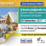Il prossimo appuntamento si terrà Mercoledì 29 Settembre 2021, ore 16:00>17:00 sul tema “Il lavoro stagionale invernale in Europa: come e dove trovare le migliori offerte di lavoro con Eures” e sarà condotto da Fabrizio Rossetto (EURES ADVISER – Afol Monza Brianza).